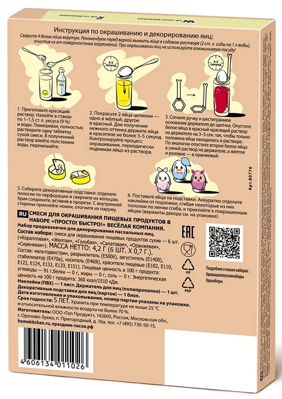Смеси для окрашивания Домашняя кухня Пасхальные мотивы (4г x 3шт), 12г