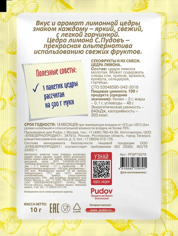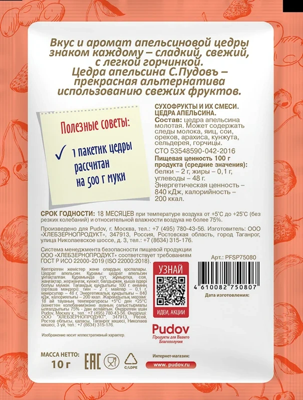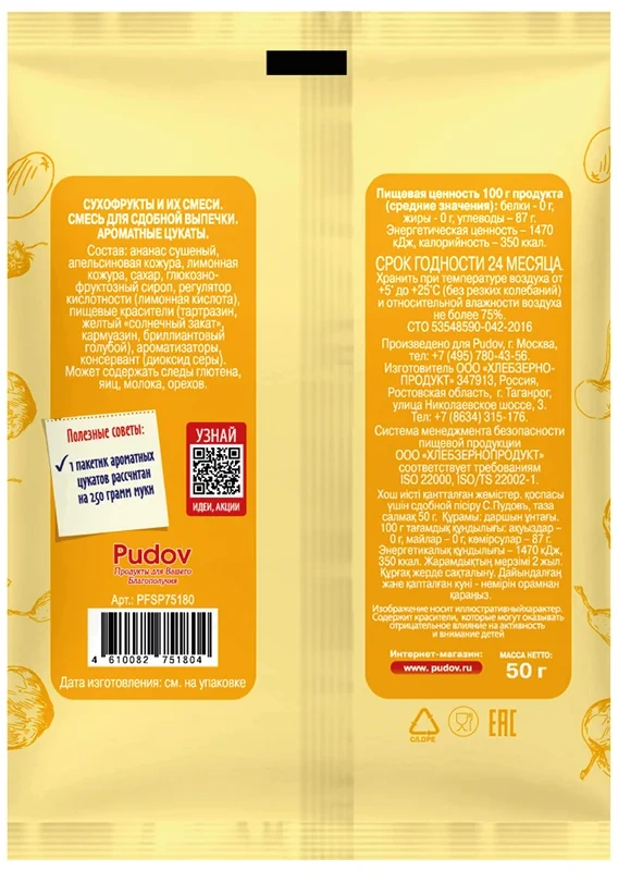 Цукаты С.Пудовъ ароматные для сдобной выпечки, 50г