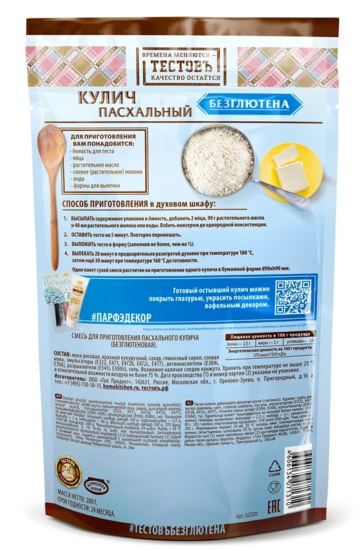 Смесь для Пасхального Кулича Тестов без глютена и лактозы, 200г