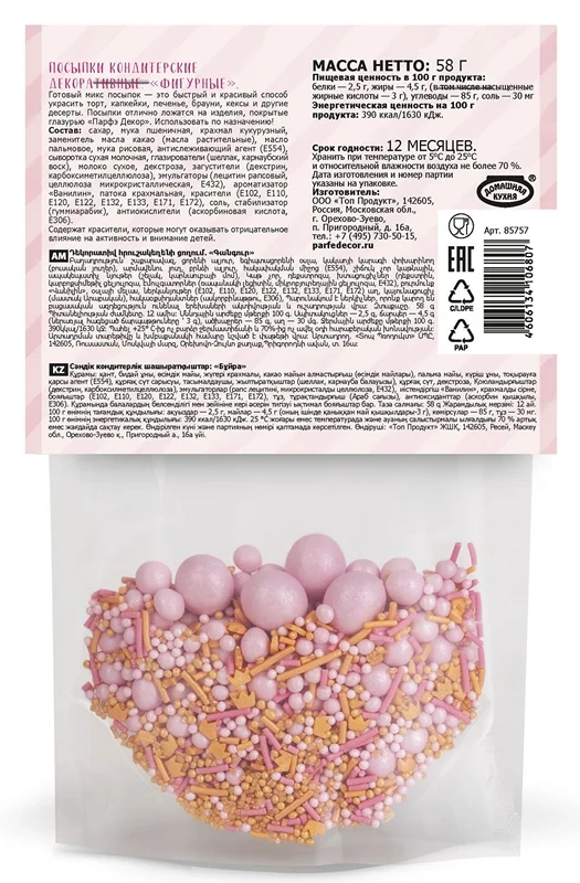 Посыпки кондитерские Парфэ Декор фигурные нежность, 58г