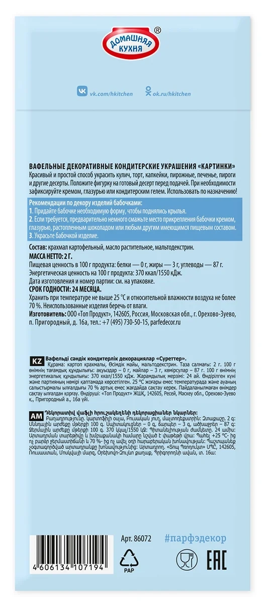 Украшения кондитерские Парфэ Декор дизайн бабочки, 2г