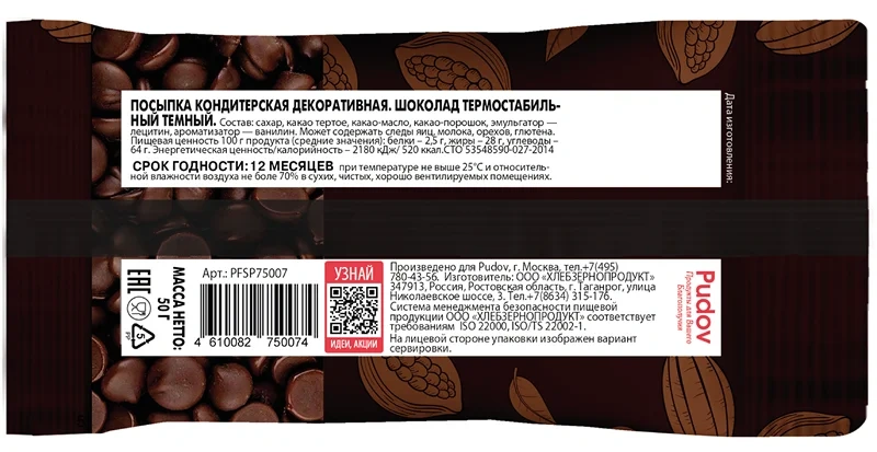 Шоколад С.Пудовъ темный термостабильный, 50г