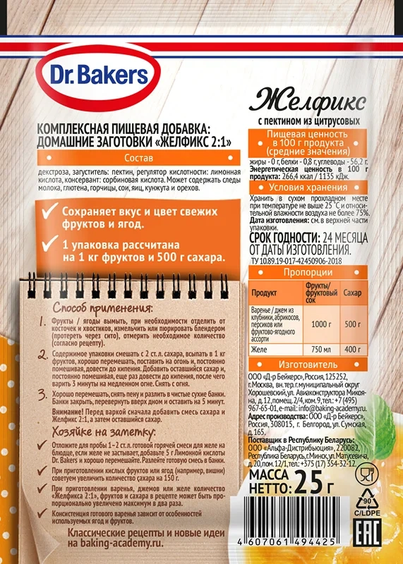 Желфикс Dr.Bakers 2:1 для консервирования, 25г
