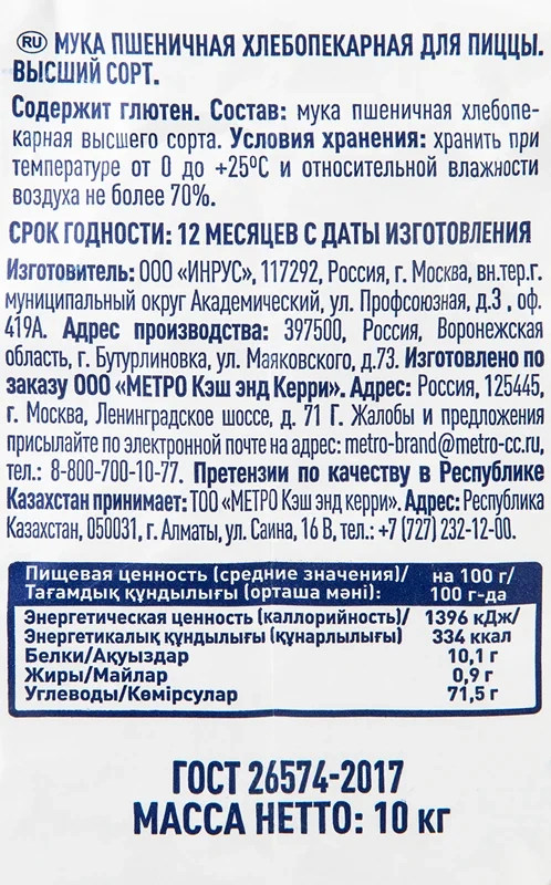 METRO Chef Мука пшеничная хлебопекарная высший сорт, 10кг