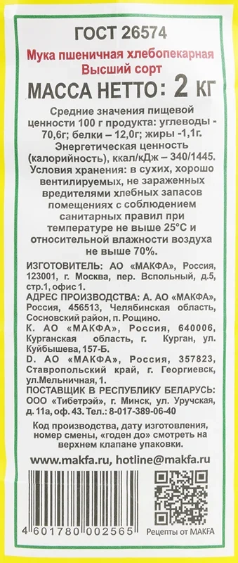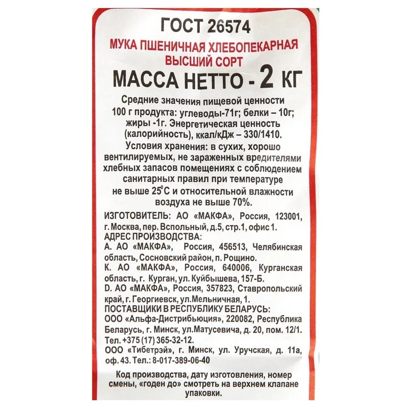Мука Макфа пшеничная, высший сорт, 2кг