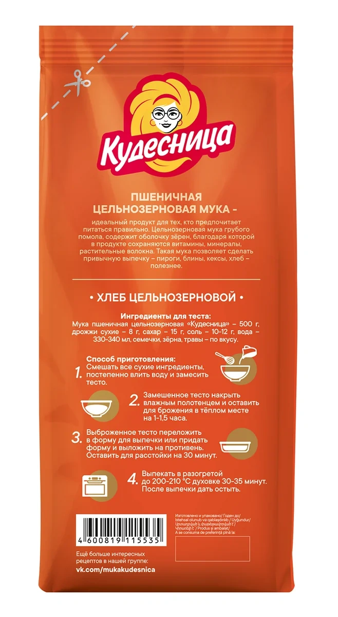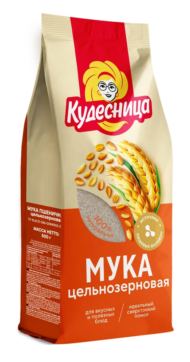 Мука пшеничная Кудесница цельнозерновая, 500г