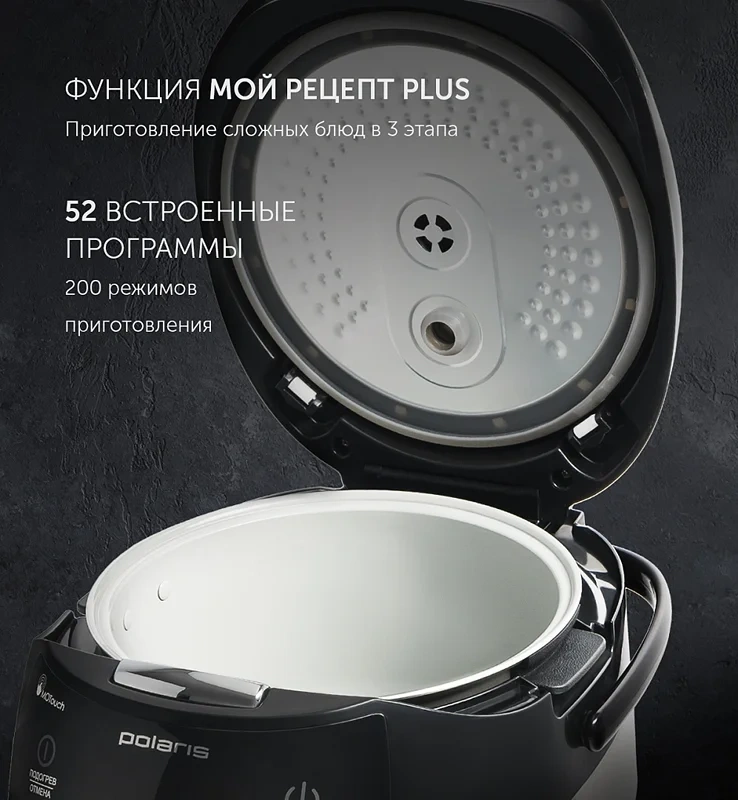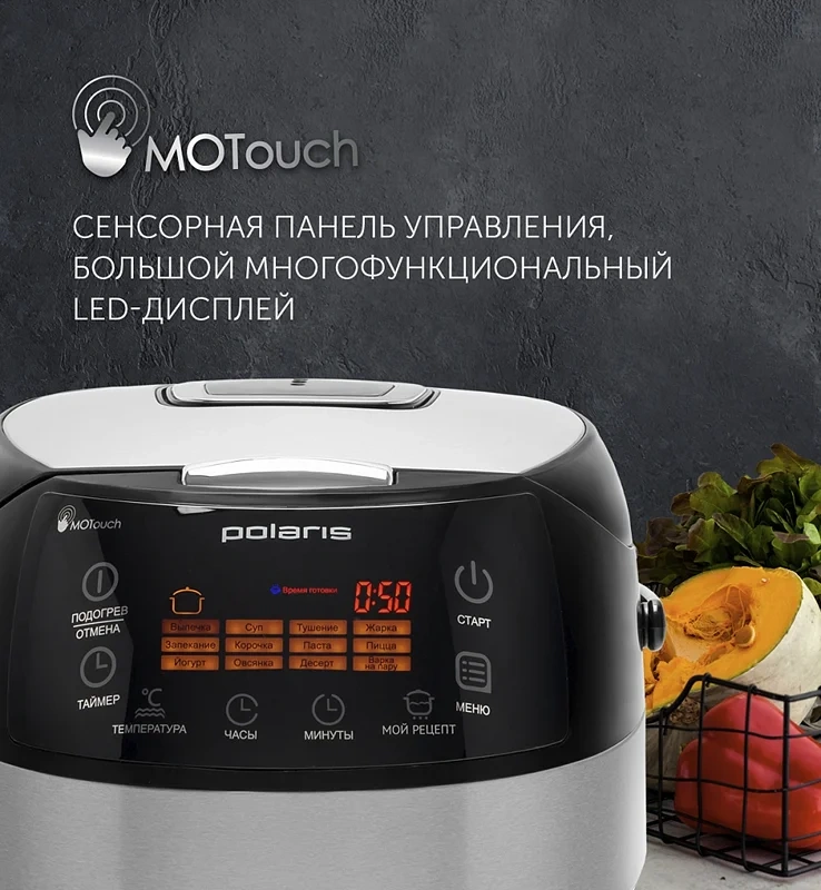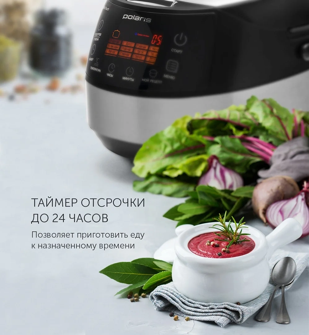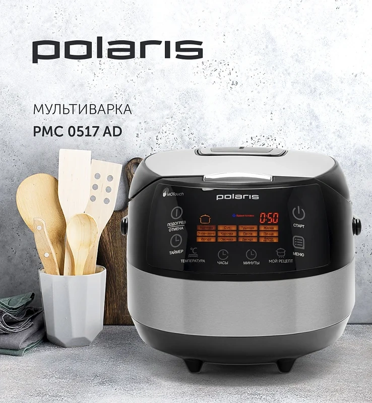 Мультиварка Polaris PMC 0517AD идеально впишется в интерьер любой современной кухни. С ее помощью можно готовить вкусную и здоровую пищу. Данная модель оснащена электронной панелью с сенсорным управлением, трехцветным LCD-дисплеем на русском языке, 16 автоматическими программами приготовления, а также функцией Мой рецепт plus. В мультиварке используется технология 3D нагрева, которая обеспечивает равномерное прогревание пищи со всех сторон. Антибактериальное керамическое покрытие чаши Anato обеспечивает приготовления здоровой еды. На чаше имеются удобные ручки, которые не нагреваются. Мультиварка позволяет четко контролировать процесс приготовления различных блюд благодаря таймеру отсрочки. Эта модель способна поддерживать температуру до 24 часов. Чаши можно мыть в посудомоечных машинах. К каждому комплекту прилагаются следующие аксессуары: 2 ложки: столовая и плоская; контейнер-пароварка; мерная чашка, книга рецептов в подарок.