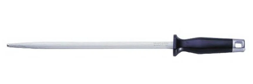 METRO PROFESSIONAL Мусат Expert с лезвием 25 см из прочной углеродистой стали подходит для быстрой и качественной заточки затупившихся лезвий ножей. Кованая ручка выполнена из прочной нержавеющей стали, что обеспечивает долговечность и прочность изделию. Сверху она покрыта нескользящим пластиком. Мусат прекрасно справится с поставленной задачей как при использовании в профессиональной среде, так и в домашних условиях. Не допускается его очищение в посудомоечной машине. Только мытье ручным способом.