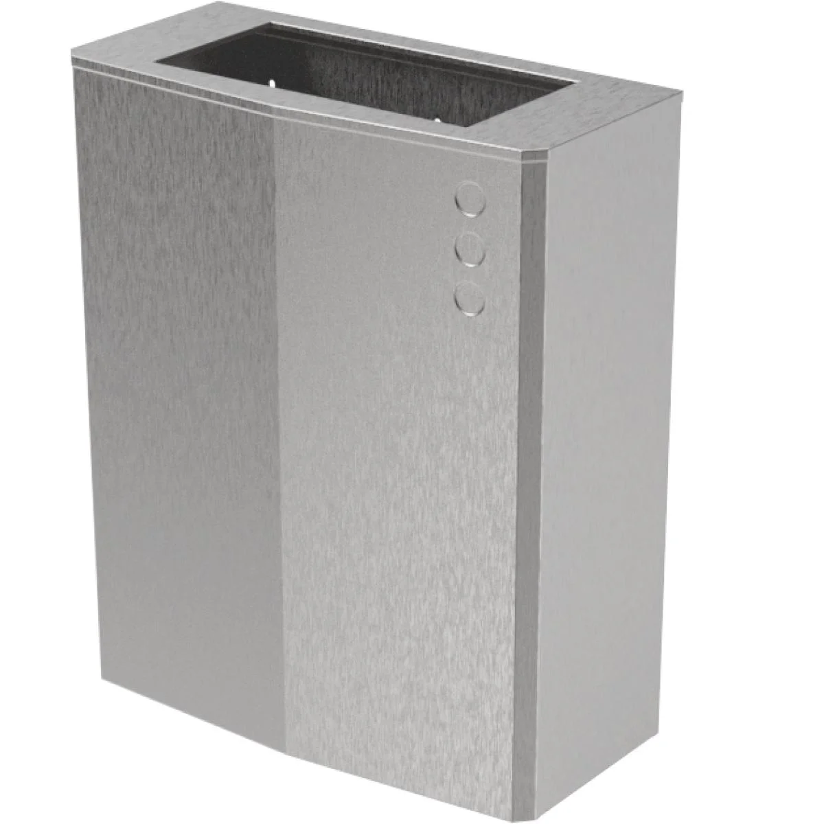 Контейнер для мусора 14078.EVO.S настенный из нержавеющей стали матовый 23 л. с крышкой для зажима пакета Nofer изготовлен из оцинкованного листа.