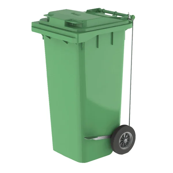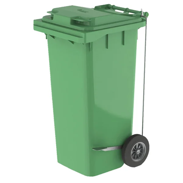 Контейнер-бак для мусора на колесах Iplast 120л, зеленый, с крышкой, с педалью, 23.C21