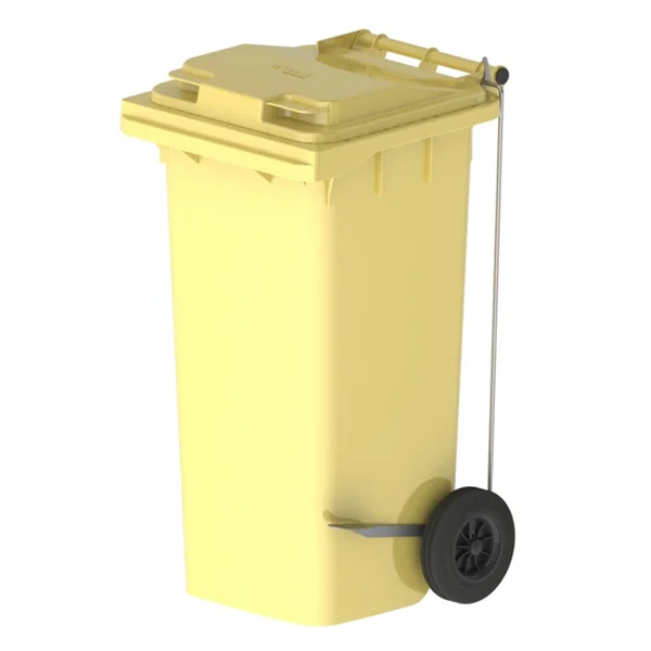 Контейнер-бак для мусора на колесах Iplast 120л, желтый, с крышкой, с педалью, 23.C21