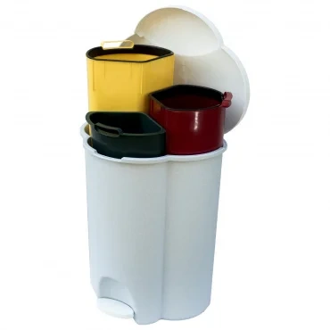 Контейнер для мусора с педалью Rubbermaid Trio 3 раздела, белый, для раздельного мусора, R050509