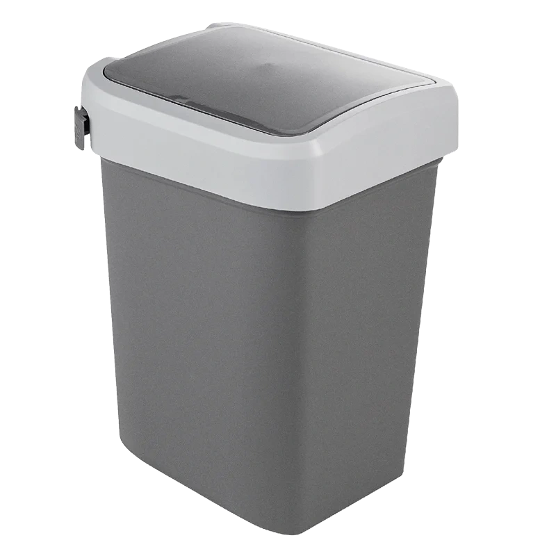 Контейнер для мусора М-Пластика Свинг 50л, серый, с качающейся крышкой, M 2464