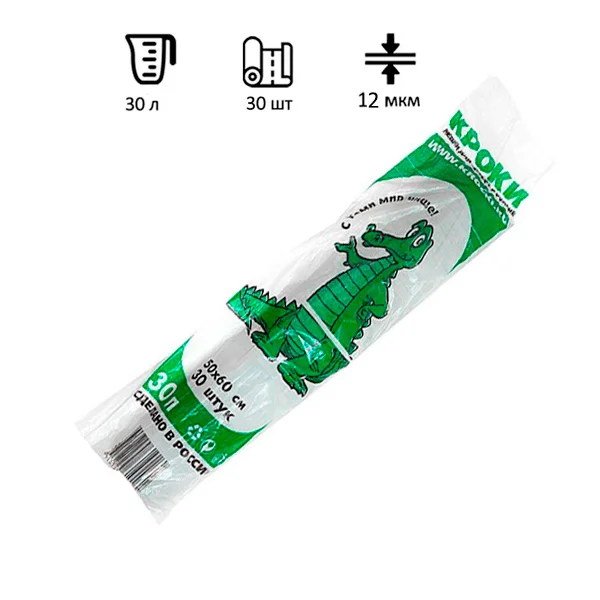 Мешки для мусора Ромашка Стандарт 30л, ПНД, 48х57.5см, 12мкм, 30шт, черного цвета, в рулоне