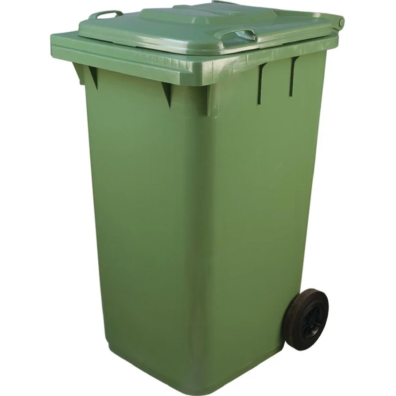 Мусорный бак на колесах 240л, зеленый, с крышкой