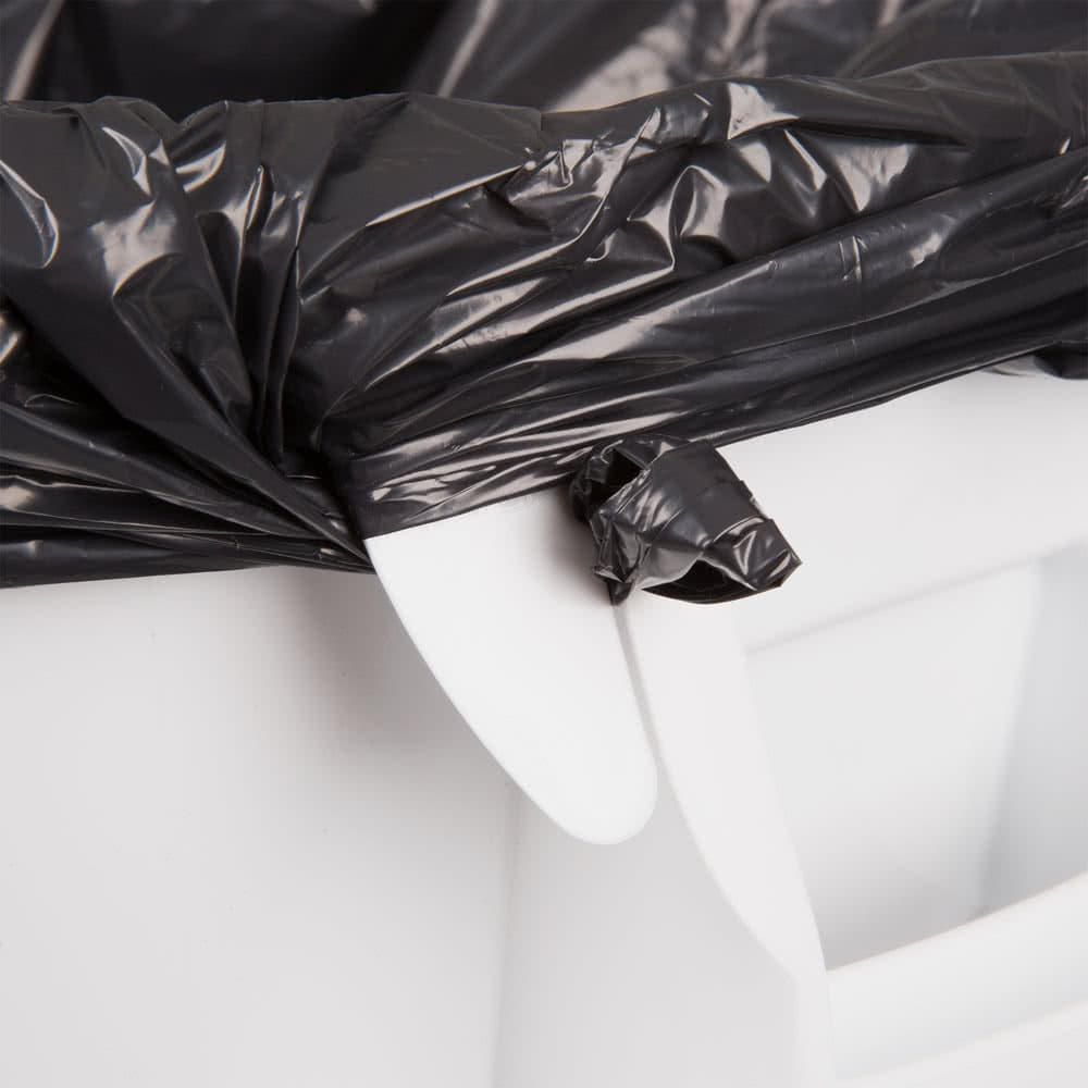 - Снабжён вентеляционными каналами для облегчения извлечения полных мешков с мусором (на 50% легче).