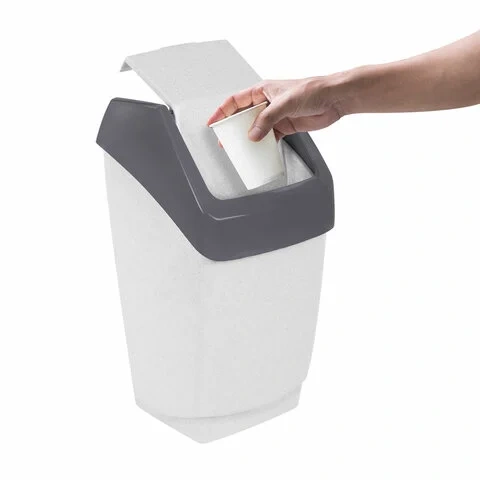 Мусорное ведро М-Пластика Хапс 15л, серое, с качающейся крышкой, М 2471