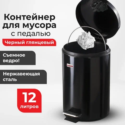 Мусорное ведро с педалью Laima 12л, черное, с внутренним ведром