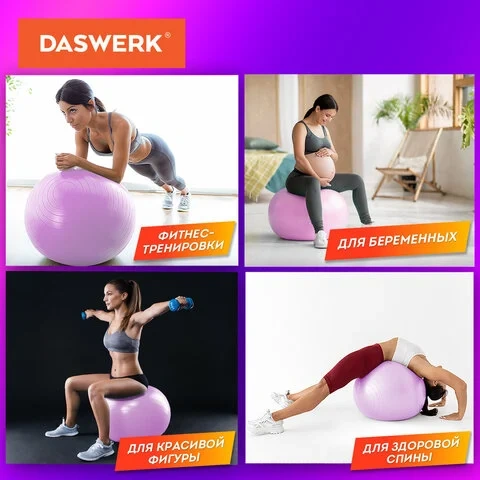 Мяч гимнастический (фитбол) 65 см с эффектом 'антивзрыв', с ручным насосом, розовый, DASWERK, 680016