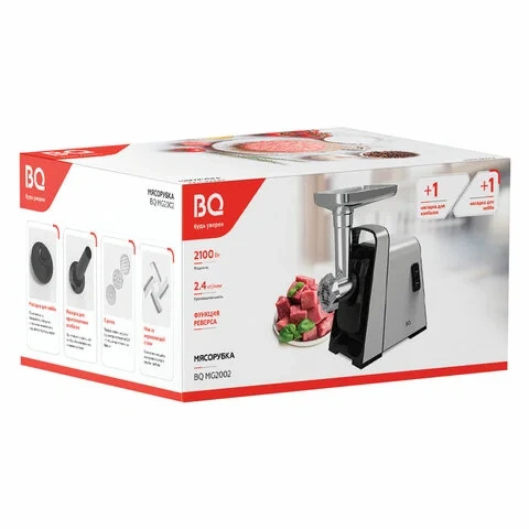 Мясорубка BQ (БИ-КЬЮ) MG2002, 2100 Вт, производительность 2,4 кг/мин, 5 насадок, реверс, стальная, 8