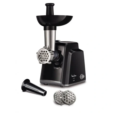Мясорубка MOULINEX ME105830, 1400 Вт, производительность 1,7 кг/мин, 2 насадки, реверс, пластик, чер