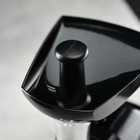 Одним нажатием кнопки можно легко очистить машину от застрявших кусочков. Благодаря небольшим размерам для прибора легко найти место в кухонном шкафу.