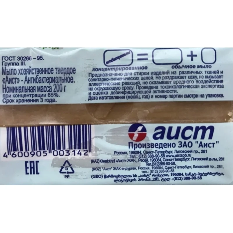 Мыло хозяйственное Аист Антибактериальное 64% 200 г