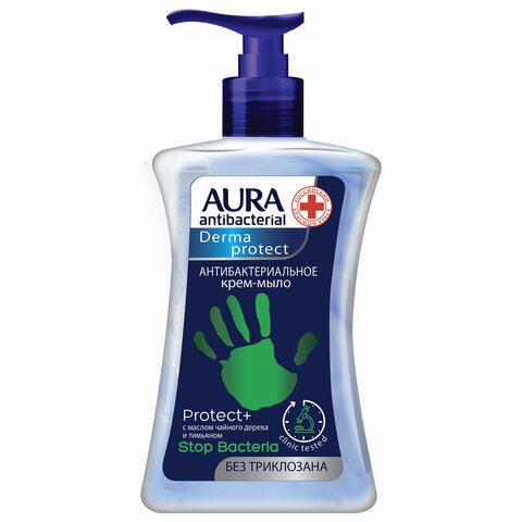 Мыло-крем антибактериальное 250мл AURA DERMA PROTECT 'Чайное дерево и прополисом', дозатор,ш/к 30291