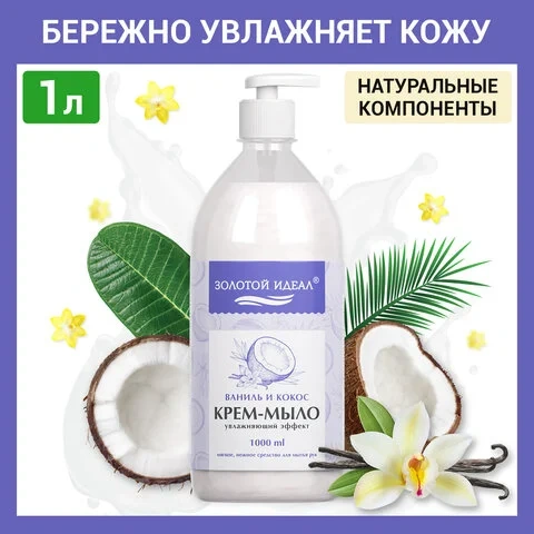 Мыло-крем жидкое 1 л ЗОЛОТОЙ ИДЕАЛ 'Ваниль и кокос', дозатор, 608286