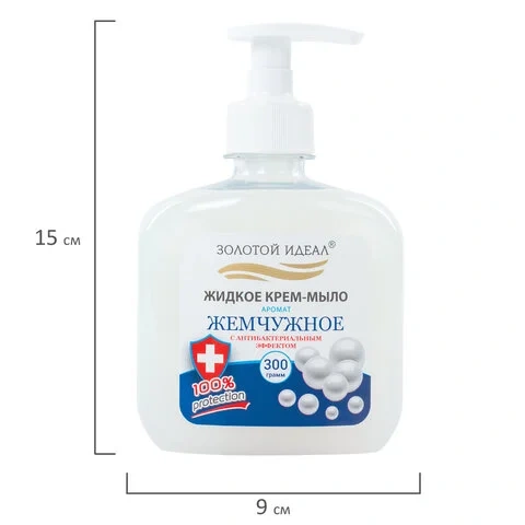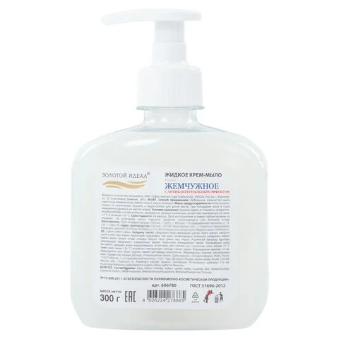 Мыло-крем жидкое 300 г ЗОЛОТОЙ ИДЕАЛ 'Жемчужное', с антибактериальным эффектом, дозатор, 606780