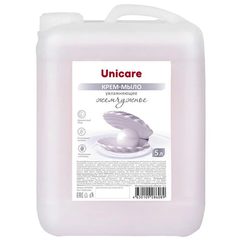 Мыло-крем жидкое 5 л UNICARE 'Жемчужное', увлажняющее, канистра, UC501061