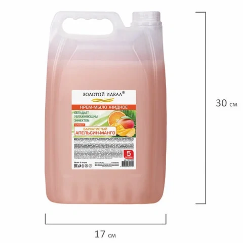 Мыло-крем жидкое, 5 л, ЗОЛОТОЙ ИДЕАЛ 'Бархатистый апельсин-манго', 607492