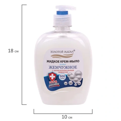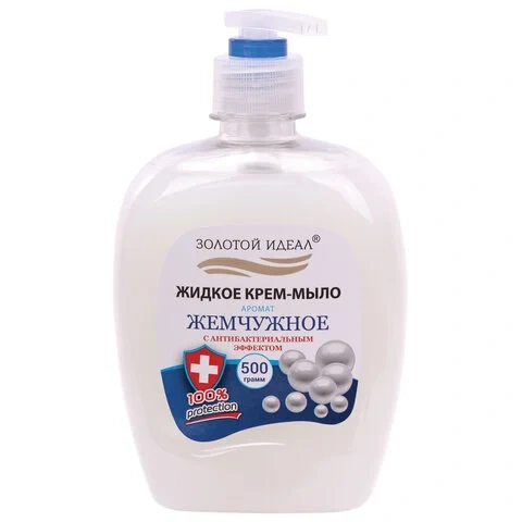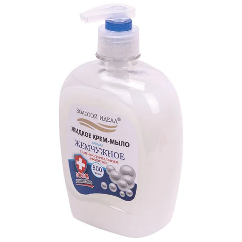 Мыло-крем жидкое 500 г ЗОЛОТОЙ ИДЕАЛ 'Жемчужное', с антибактериальным эффектом, дозатор, 606414