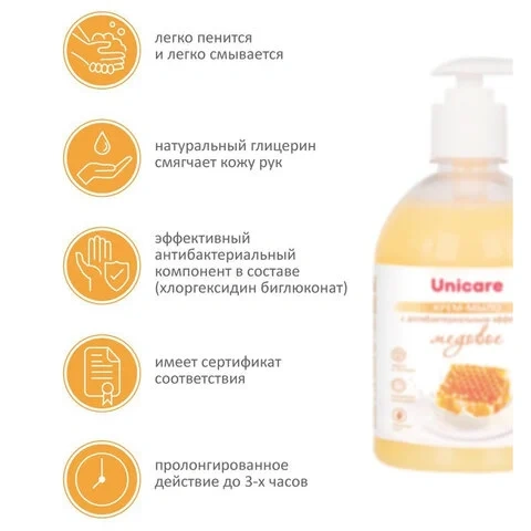 Мыло-крем жидкое с антибактериальным эффектом 500 мл UNICARE 'Медовое', с дозатором, UC501062