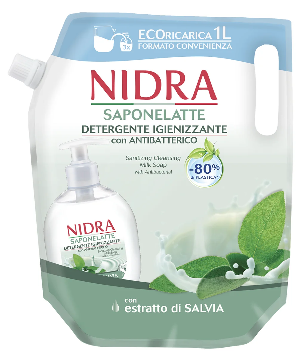 Очищающее молочное мыло Nidra идеально подходит для ежедневной гигиены рук для всей семьи. Оно обогащено экстрактом шалфея, ароматическим растением, известным своими драгоценными антибактериальными свойствами, и 100% натуральными молочными протеинами, которые помогают поддерживать водный баланс организма. Такая уходовая косметика подходит для очищения кожи рук и тела, особенно под ногтями, где скапливается большое количество бактерий. Жидкое антибактериальное мыло с молочным протеином защищает кожу от сухости и обеспечивает антисептический эффект, увлажняет и питает кожу рук.