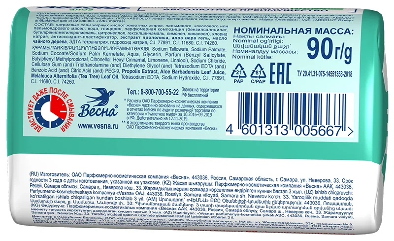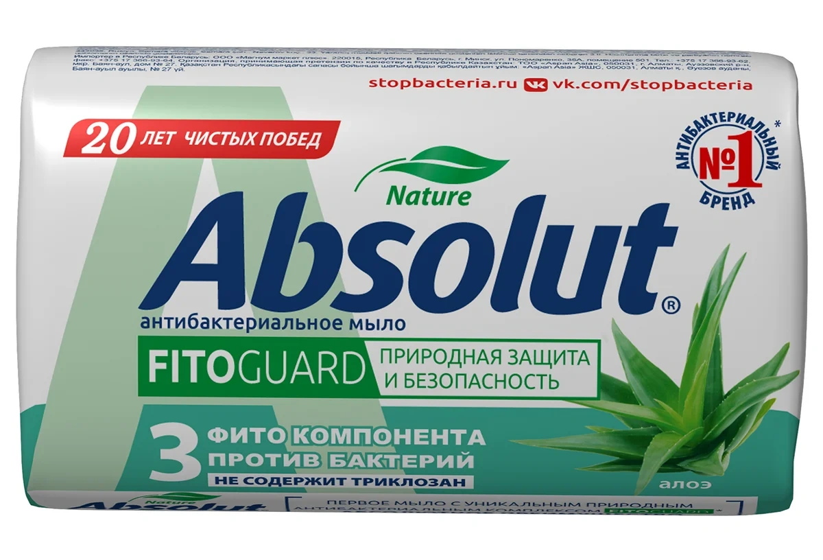 Мыло Absolut Fitoguard алоэ, 90г – это средство личной гигиены, обладающее антибактериальным, гипоаллергенным действием. Его качество и безопасность использования подтверждена дерматологами и многочисленными положительными отзывами пользователей. Fitoguard – это уникальный комплекс, в составе которого есть прополис, масло чайного дерева, алоэ. Гигиеническое средство способно надежно защищать от бактерий, а также обеспечивать бережный уход за кожей, благодаря специальным добавкам. Натуральные комплексы способствуют обогащению кожи витаминами и ее увлажнению.