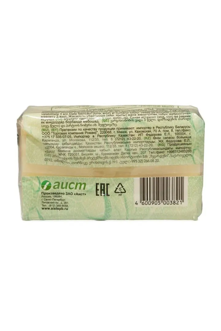 Мыло туалетное твердое 'Ординарное 'Банное'Традиционное высококачественное туалетное мыло тройного пилирования с экстрактом березового листа и насыщенным ароматом луговых трав.Представляет собой продукт, состоящий из натриевых солей жирных кислот натуральных жиров и растительных масел с добавлением глицерина, антиоксидантов и парфюмерных веществ.Предназначено для целей личной гигиены.Обладает высокой моющей способностью, мягкой пеной и бережным воздействием на кожу рук, не вызывает аллергических реакций.Марка О.Срок годности 36 месяцев
