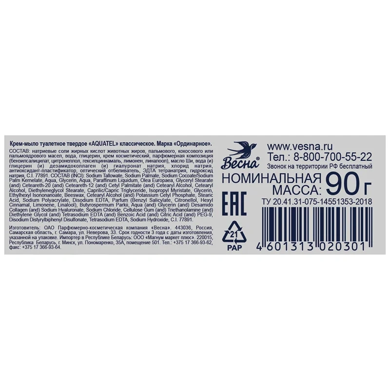 Мыло туалетное Aquatel Класическое, увлажняющее, 90г