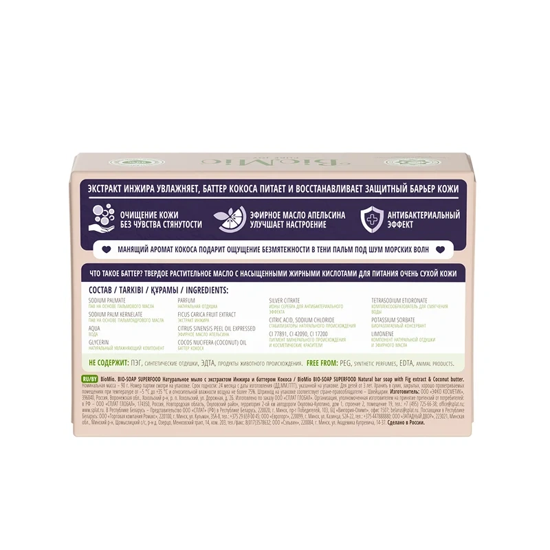 Мыло туалетное BioMio Vegan Soap Экстракт инжира и баттер кокоса, 90г