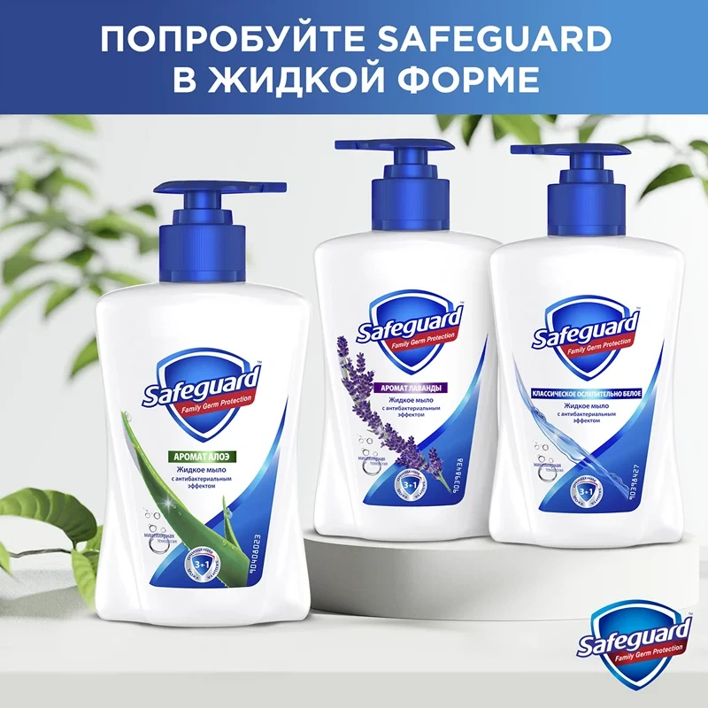 Формула Щит от микробов с антибактериальными ингредиентами и деликатным ароматом алоэ смывает грязь и бактерии с рук, помогая ежедневной защите от микробов. По данным Всемирной организации здравоохранения, тщательное мытье рук - наиболее эффективный метод предотвращения распространения вирусов. Safeguard, защищаем семьи с 1963 года.