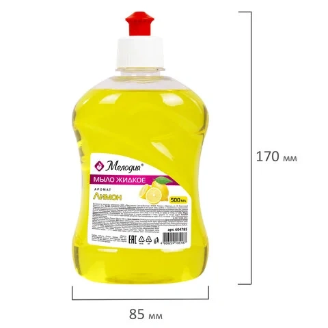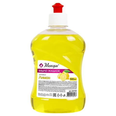 Мыло жидкое 500 мл, МЕЛОДИЯ 'Лимон', пуш-пул, 604785