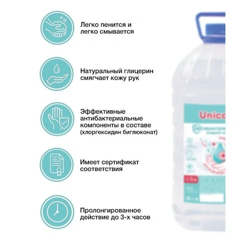 Мыло жидкое антибактериальное 5 л UNICARE, ПЭТ, UC501066