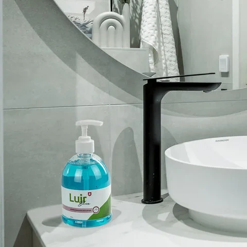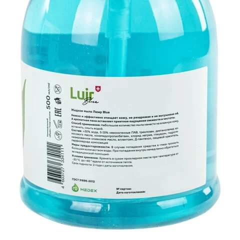 Жидкое мыло «Люир» представляет собой готовую к применению непрозрачную гелеобразную жидкость голубого цвета со слабым специфическим запахом.