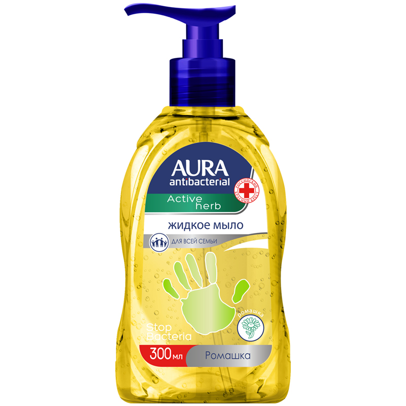 Жидкое антибактериальное мыло AURA с отваром ромашки, не только обеспечивает защиту, но и ухаживает за кожей рук. Ромашка – уникальное растение, богатое полезными для кожи компонентами. Оказывает успокаивающее влияние на кожу, а также подавляет бактериальную и вирусную инфекции.