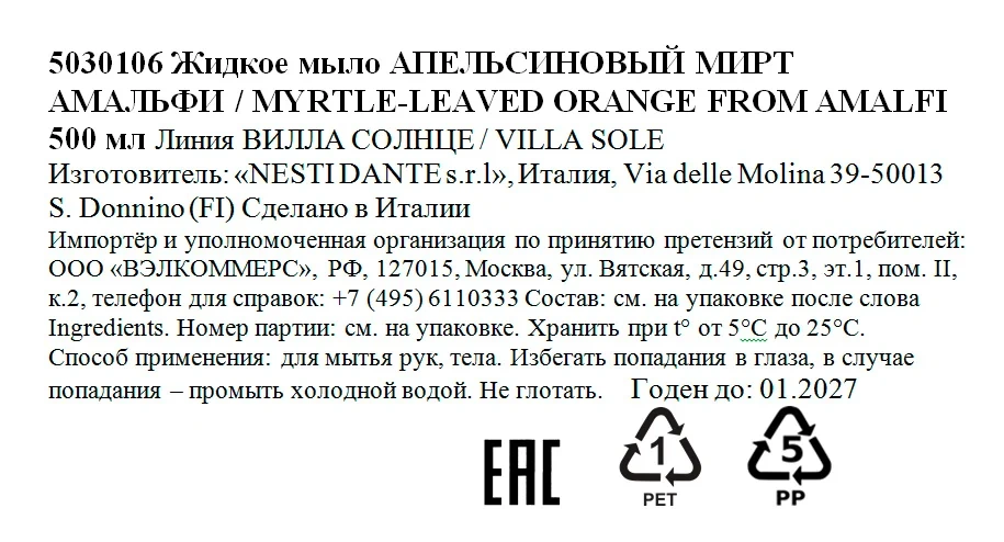 Мыло жидкое Nesti Dante Апельсиновый мирт Амальфи, 500мл