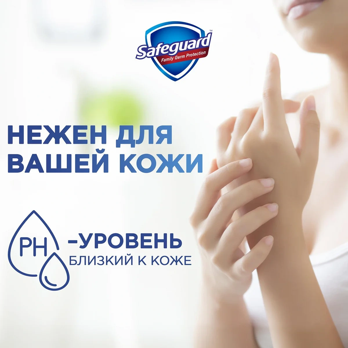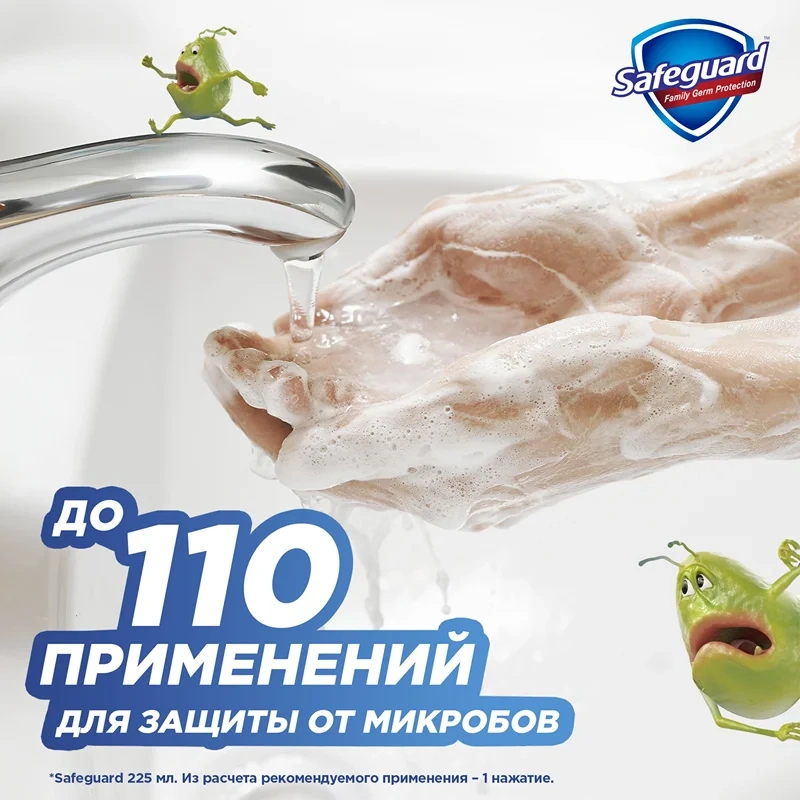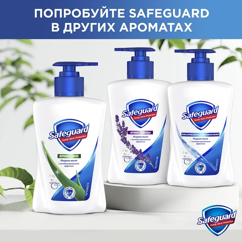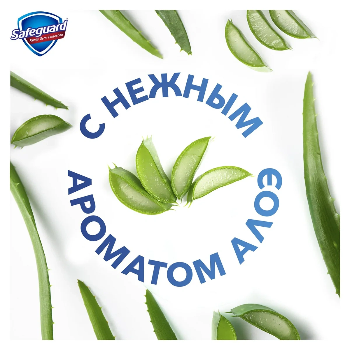 Жидкое мыло 'Safeguard' с нежным ароматом алоэ уничтожает до 99,9% всех известных болезнетворных бактерий и деликатно ухаживает за кожей рук. Средство имеет густую формулу, благодаря чему обладает высокой моющей и пенообразующей способностью. Сбалансированная очищающая система мыла очень мягко воздействует на кожу, оказывает успокаивающее воздействие и не вызывает аллергических реакций. Благодаря удобному флакону с дозатором мыло не проливается и экономично расходуется.