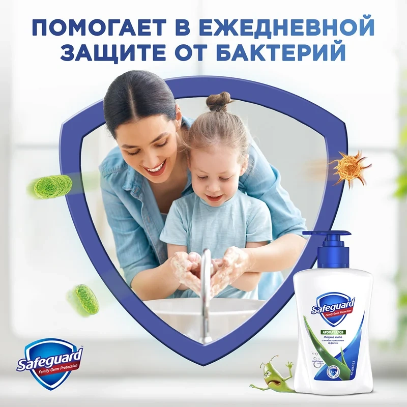 Мыло жидкое Safeguard 'Алоэ', антибактериальное, с дозатором, 225мл