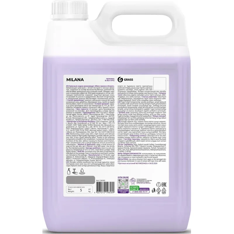 Жидкое мыло наливное Grass Milana 5кг, черника в йогурте, 126305