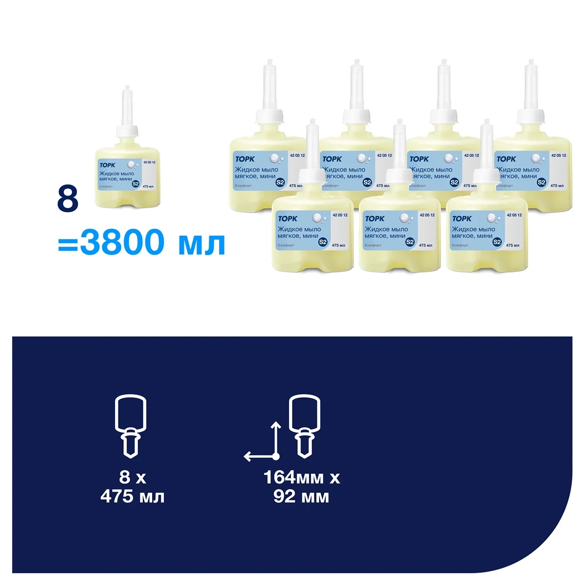 Мыло жидкое 475мл нейтральное в картридже бесцветное S2.Нейтральное жидкое мыло для рук и тела в кар...