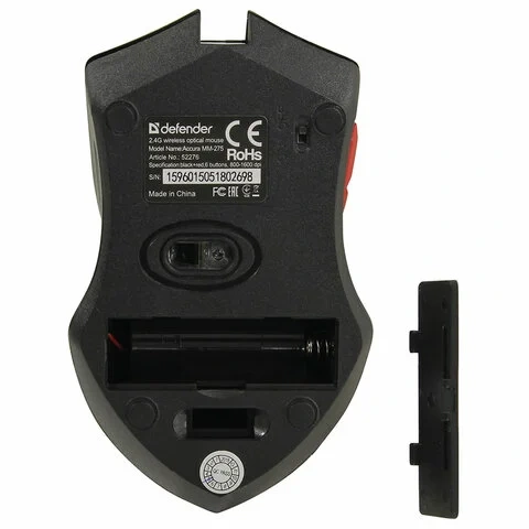 Мышь беспроводная DEFENDER Accura MM-275, USB, 5 кнопок + 1 колесо-кнопка, оптическая, красная, 5227